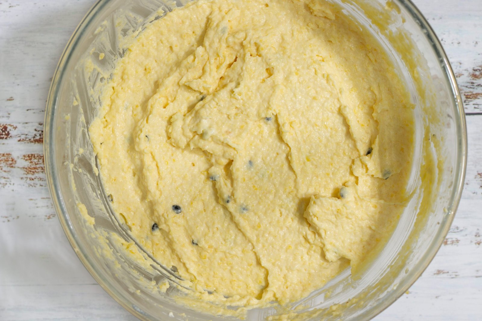 - Versez le mélange de farine petit à petit dans la mousse ainsi obtenue et mélangez délicatement de haut en bas à la spatule. Mon astuce : utilisez un chinois pour tamiser la farine et n’avoir aucun grumeaux.