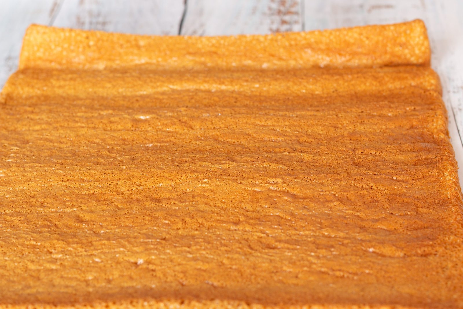 - A la sortie du four, d’un geste vif retournez votre génoise sur le torchon. Roulez délicatement la génoise dans le torchon puis laissez refroidir sur une grille.