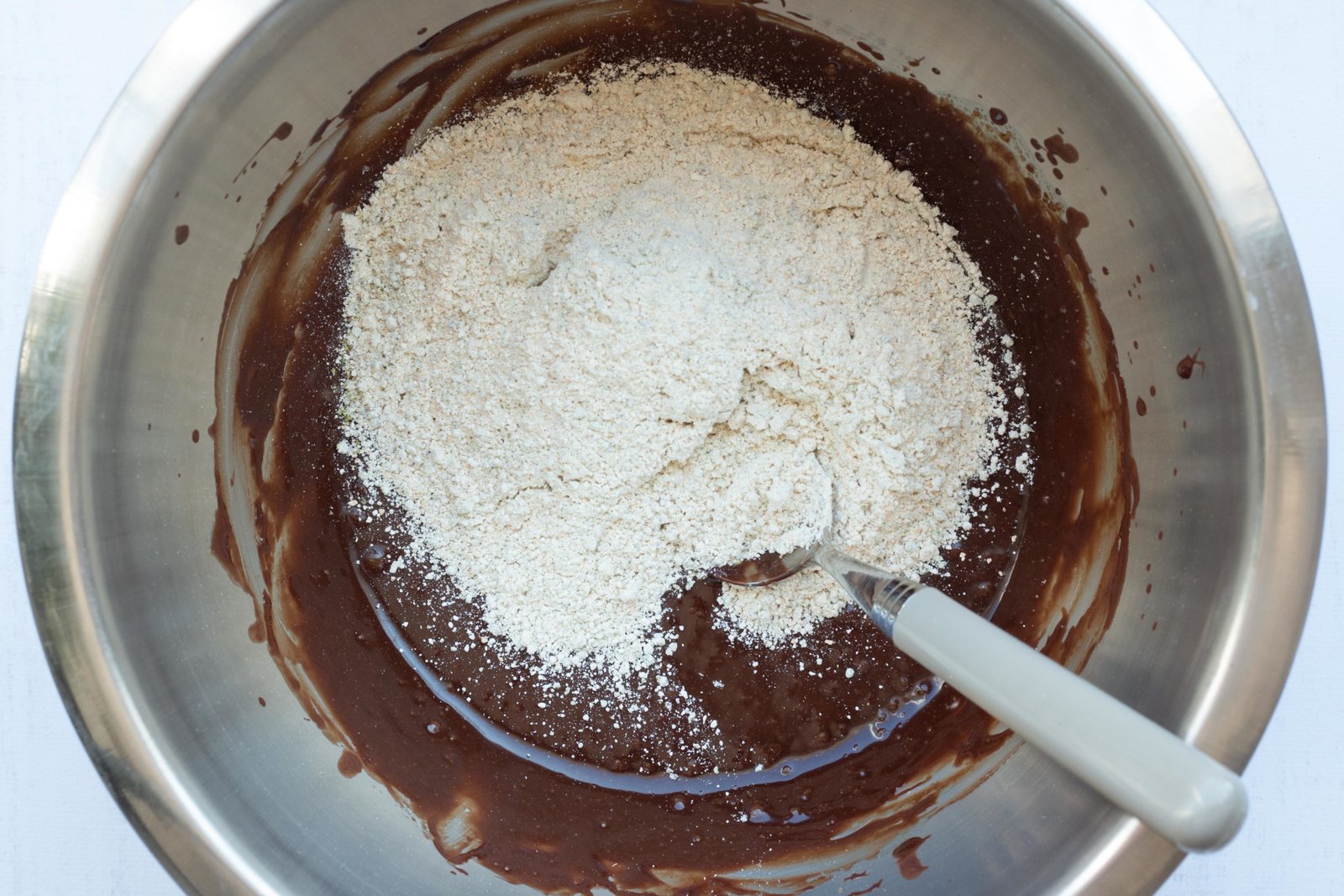 - Faites fondre le chocolat et l’huile au bain-marie. Ajoutez-les au mélange œuf/sucre et fouettez bien.