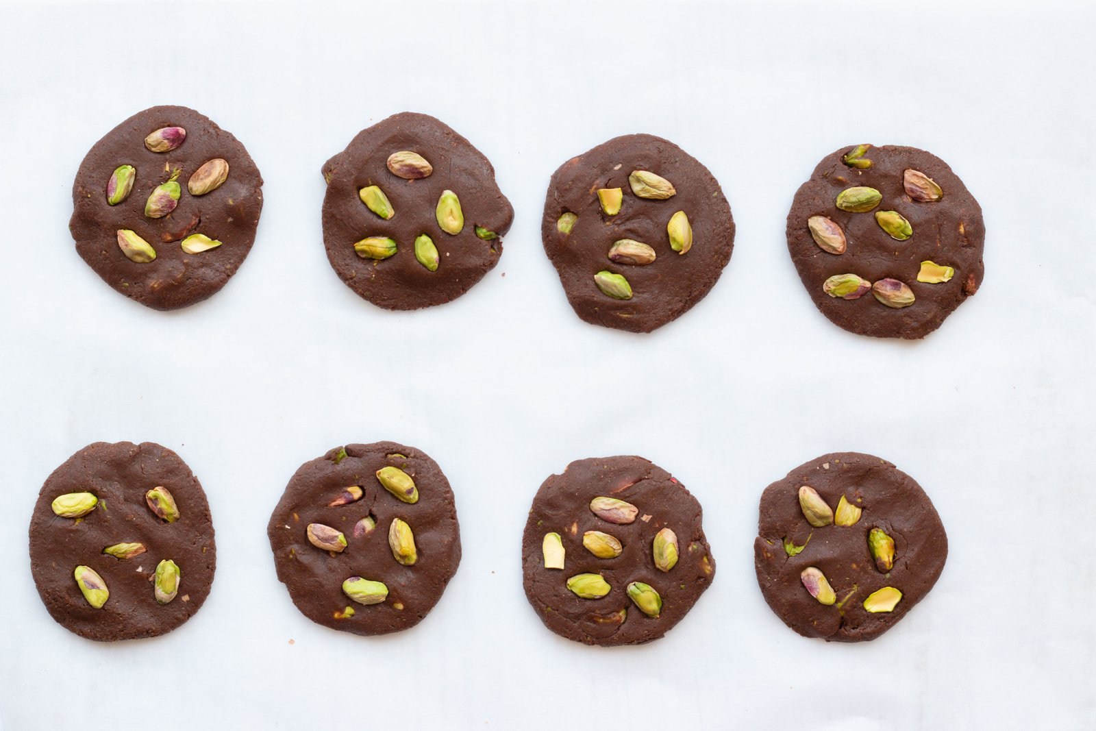 - Décorez avec les pistaches restantes en les enfonçant doucement dans la pâte.