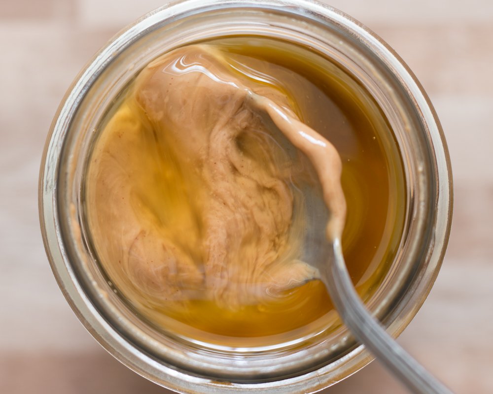 Pour obtenir des cookies moelleux et savoureux, il est impératif de bien mélanger votre purée de noisettes. A l’ouverture d’un pot neuf, vous trouverez très souvent l’huile de noisette dans la partie supérieur. Il faut s’armer d’une cuillère ou fourchette et mélanger la partie solide et liquide afin d’obtenir une purée bien liquide. Faire cette opération à chaque ouverture du pot pour que la purée soit bien liquide.