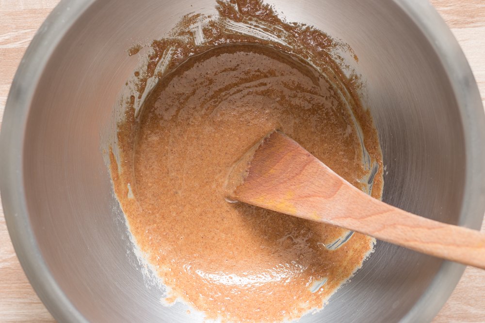 - Dans un saladier, mélangez la purée de noisette avec le sucre de coco.