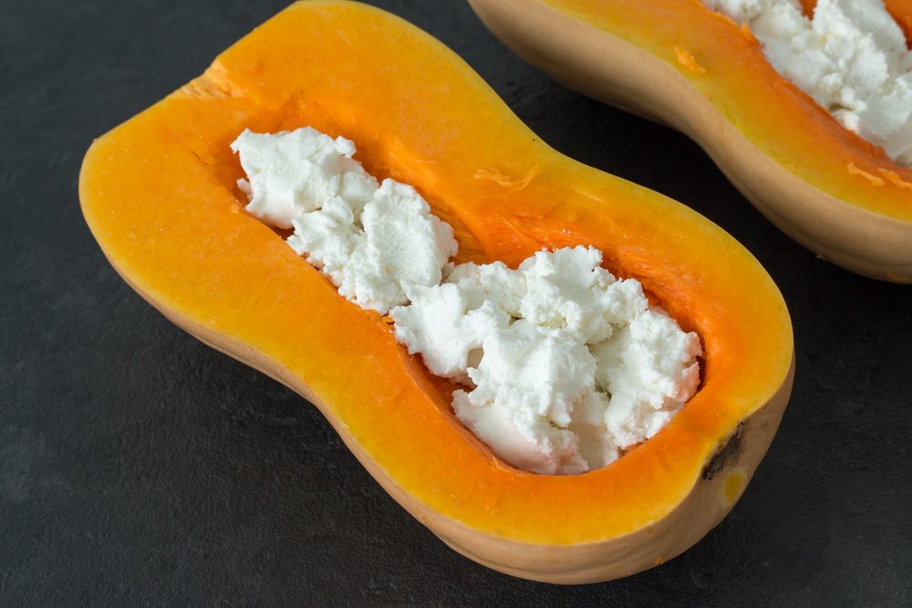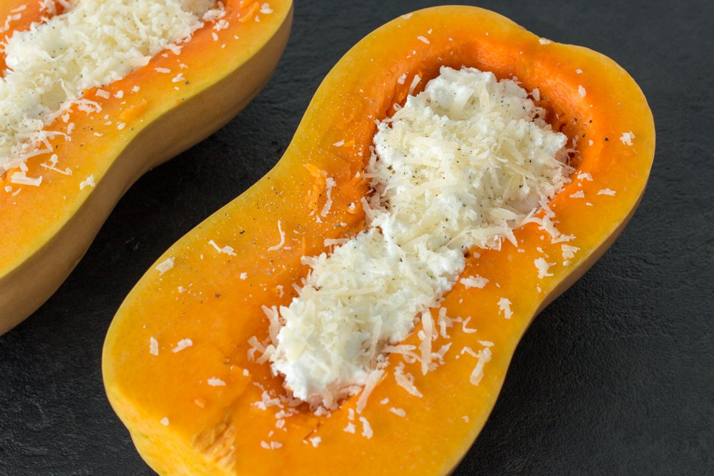 Envie d’un plat cocooning, gourmand et ultra facile à préparer ? De saison si possible ? Dans ce cas, je vous propose une recette de courge butternut cuite au four et farcie au chèvre et jambon. Riche en vitamine A, en caroténoïdes (de puissants antioxydants), en fibres… mais pauvre en calories, c’est la star de l’automne-l’hiver.
