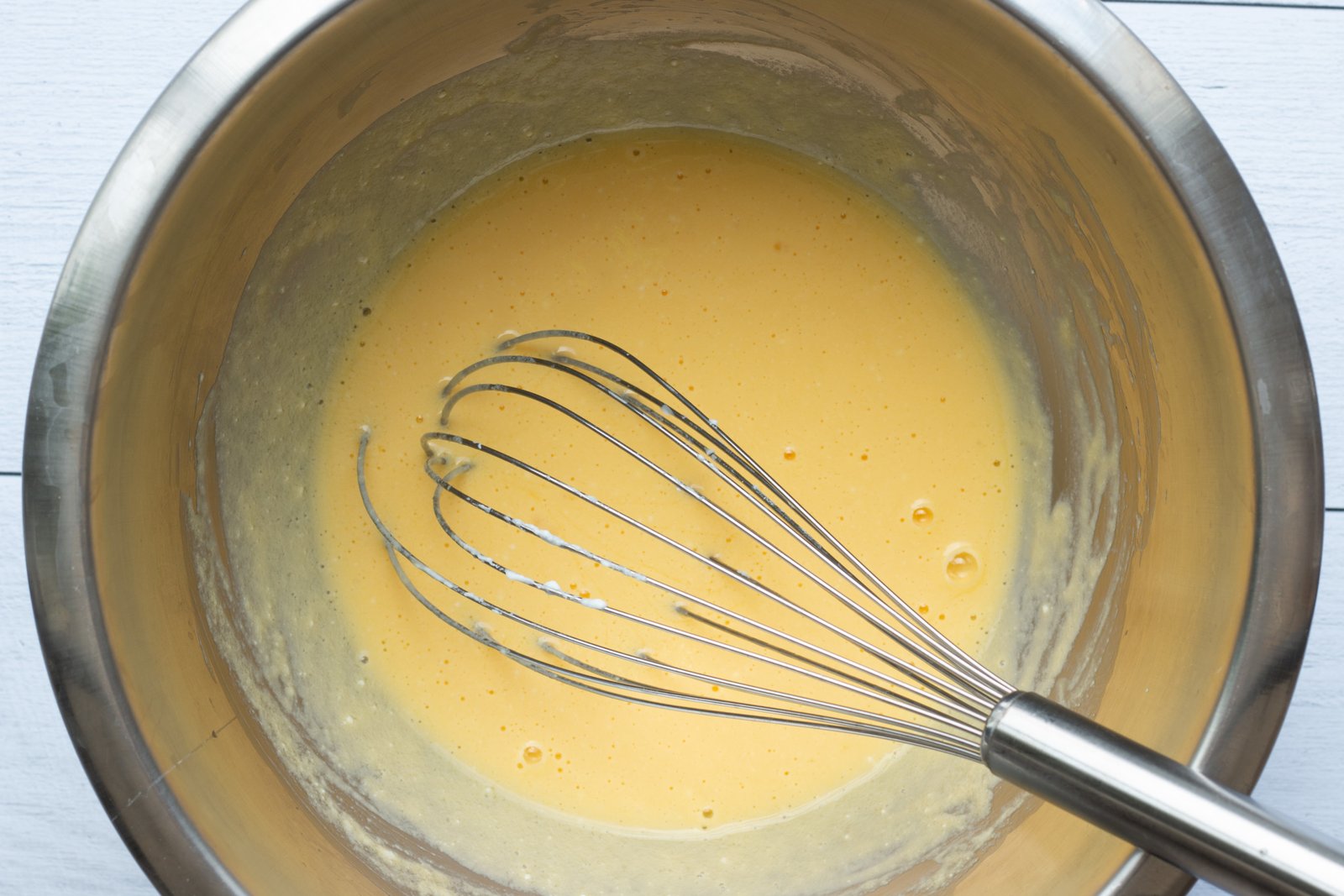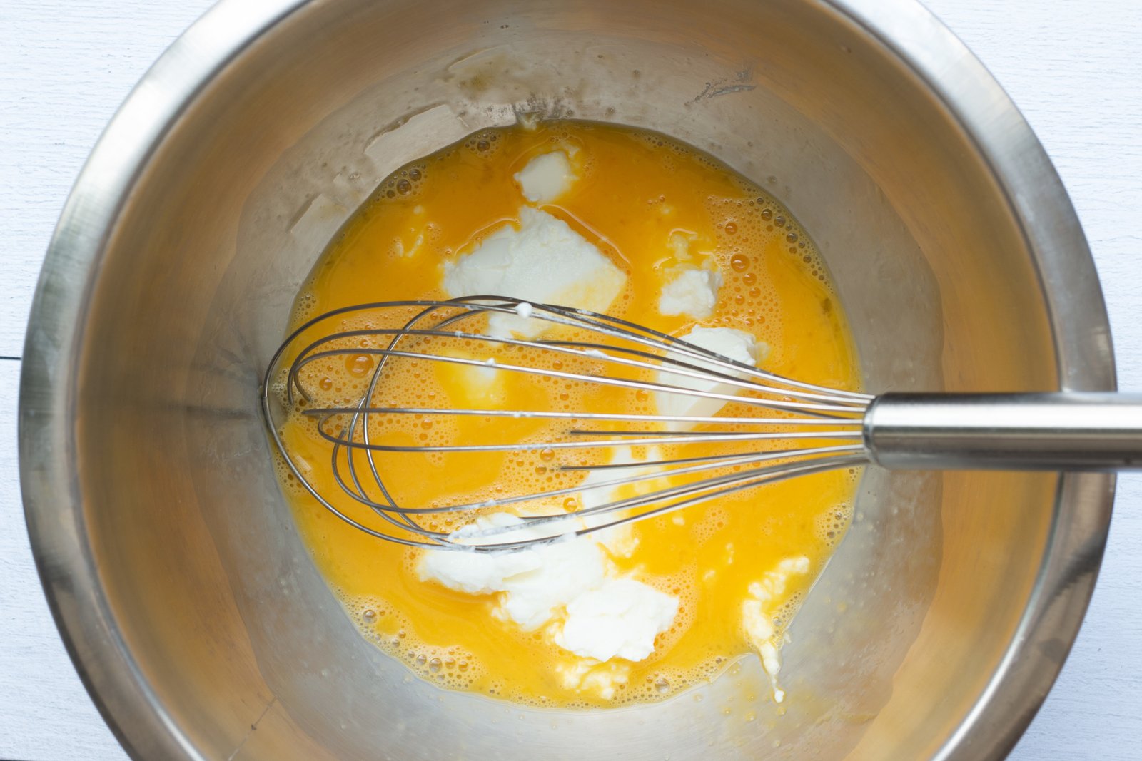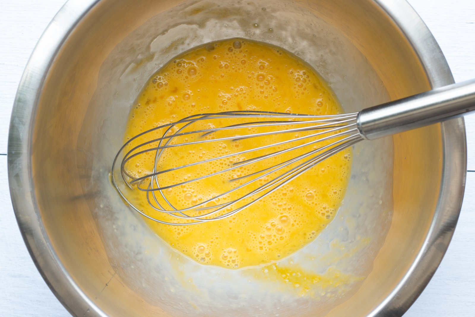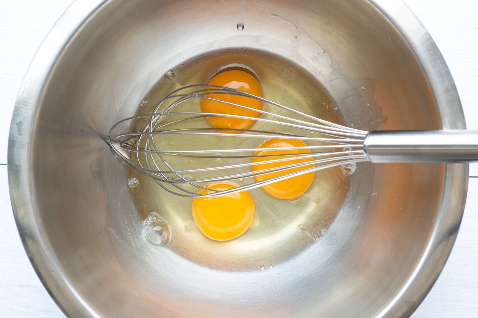 - Dans un saladier, battre au fouet les 3 oeufs.