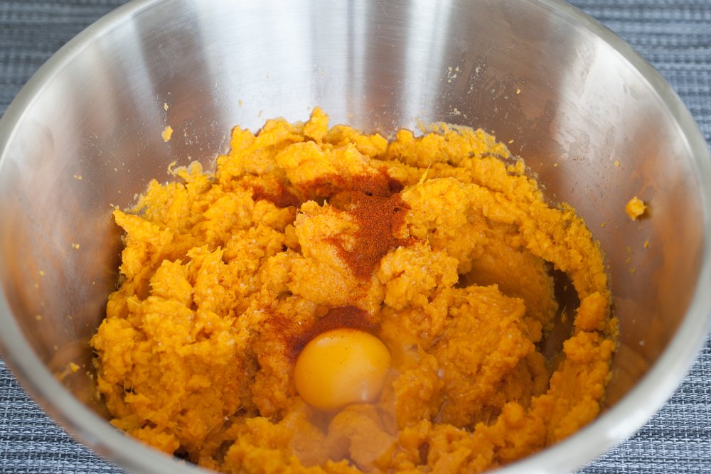 - A l’aide d’un presse purée, écrasez les patates douces.