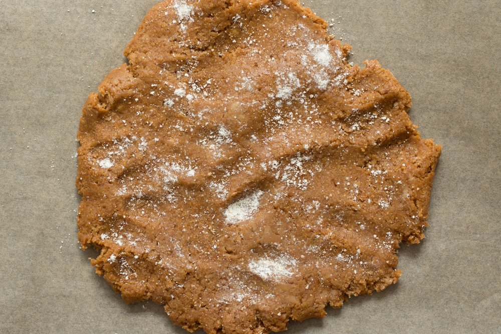- Sortez votre boule du frigo puis étalez la pâte sur du papier sulfurisé. C’est un peu difficile au début car la pâte est dure.
