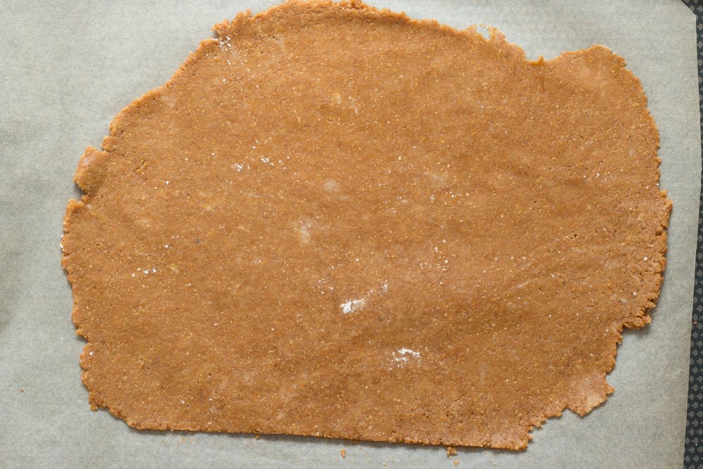 Pour cela, aidez vous d’un second papier sulfurisé et d’un rouleau à pâtisserie. Farinez votre papier sulfurisé et votre pâte pour éviter que la pâte adhère.