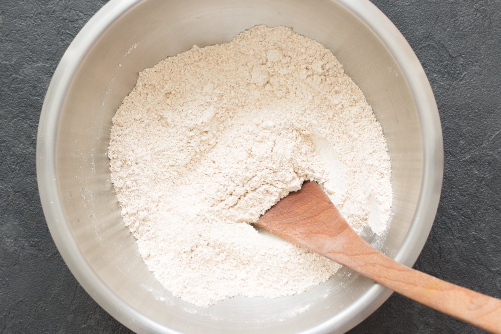 - 130 g de farine complète de petit épeautre Cette farine se trouve facilement à La Vie Claire (Naturalia ou autres magasins bio). On peut également en trouver en version intégrale dans certains supermarchés.