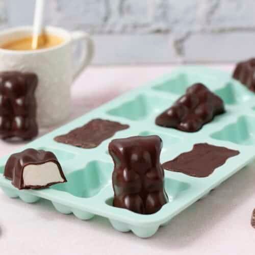 Aujourd’hui, je vous propose de les réaliser maison, avec seulement quatre ingrédients : du miel d’acacia, de la gélatine, un peu d’eau et du bon chocolat.