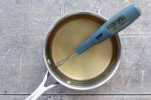 - Surveillez la température du miel : C’est le secret d’une guimauve réussie ! Le miel doit atteindre 120 °C avant d’être versé sur la gélatine. Trop bas, la guimauve restera molle ; trop haut, elle deviendra cassante. Utilisez votre spatule-thermomètre pour ne pas le rater.