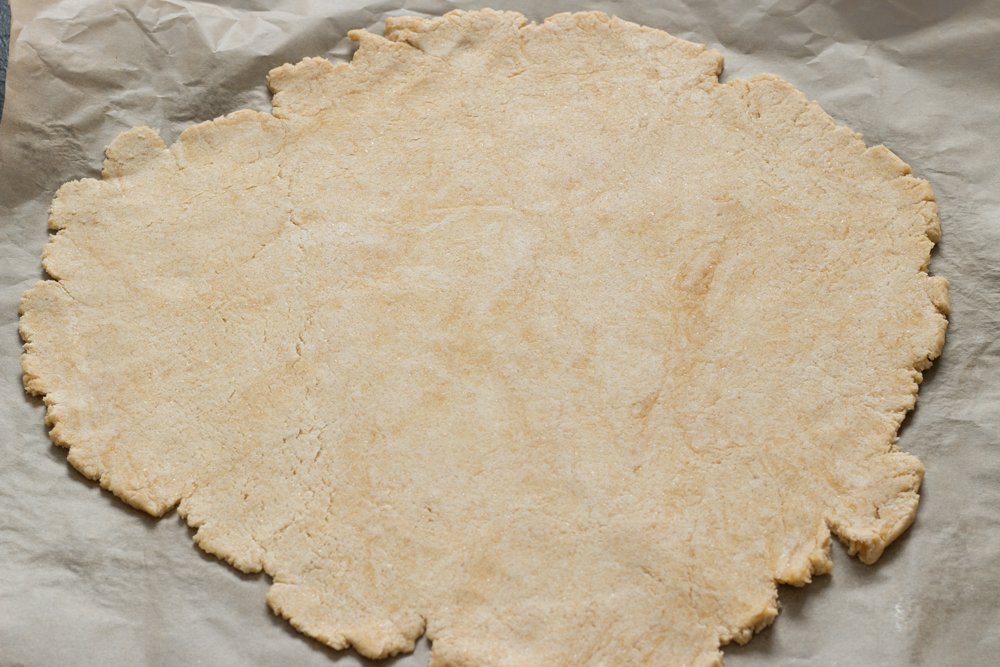 - Sur un papier sulfurisé, étalez la pâte au rouleau à pâtisserie puis placez la dans votre moule pour la façonner.