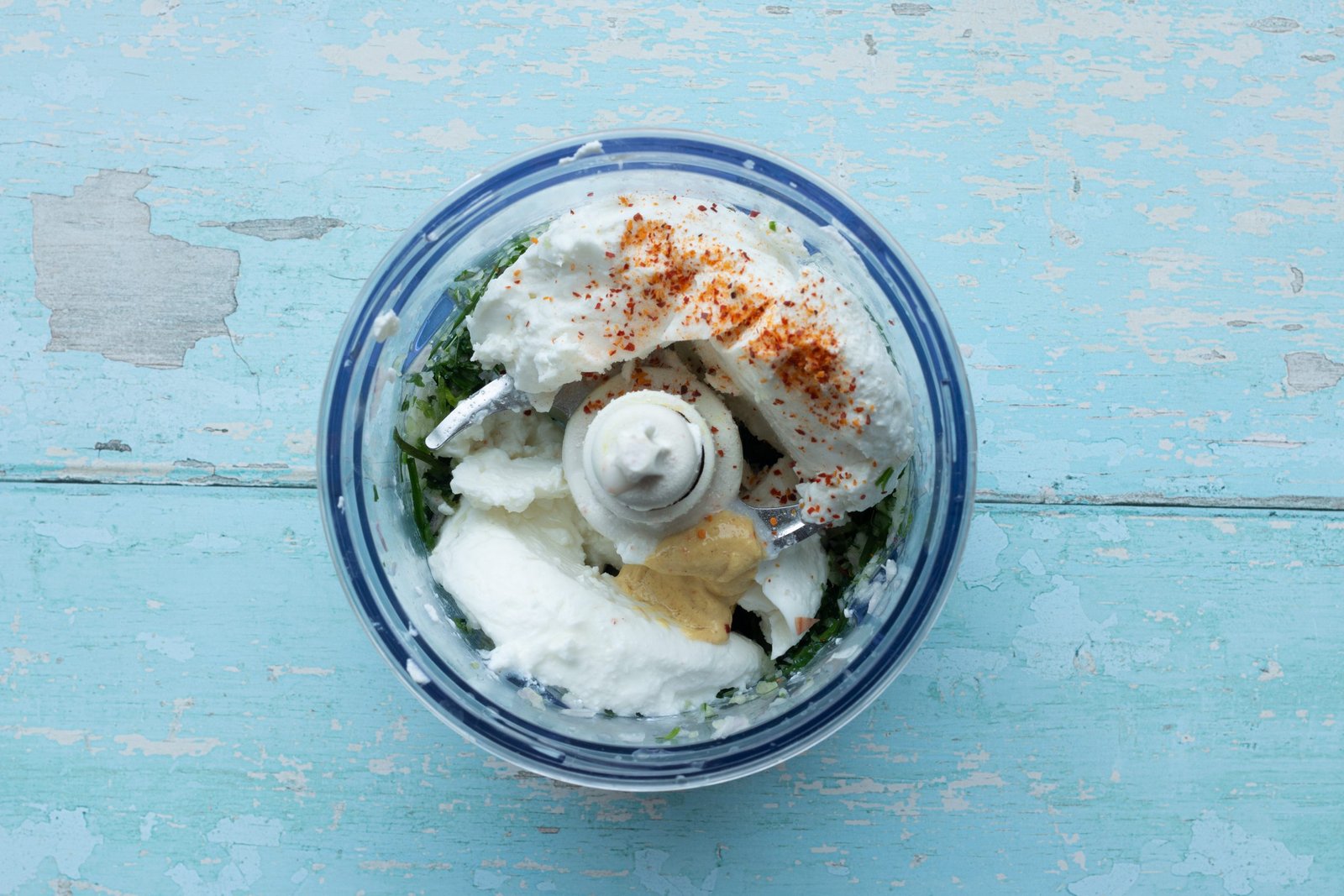 - Dans un bol ou à l'aide d'un robot mixeur, mélangez le chèvre frais avec 5 g de moutarde, la ciboulette, l'échalote, 1 pincée de piment d’Espelette, 1 filet de jus de citron, quelques pincées de sel.