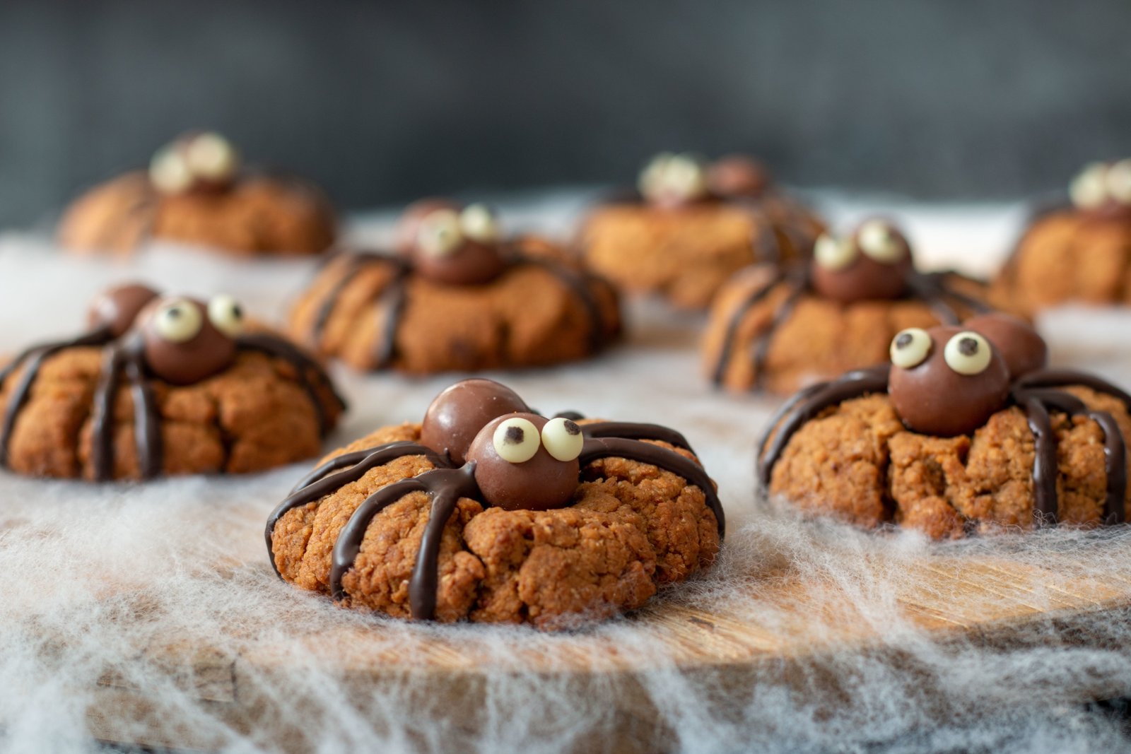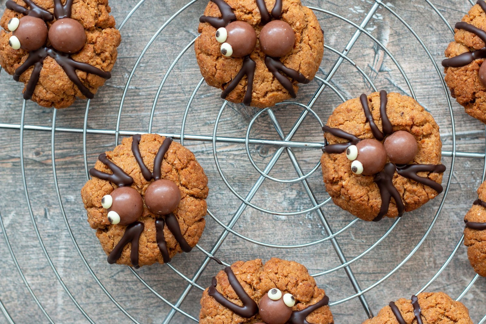 Recette de spider cookies ou cookie araignées. Goûter sain et ig bas pour un goûter d'anniversaire ou la fête d'Halloween.