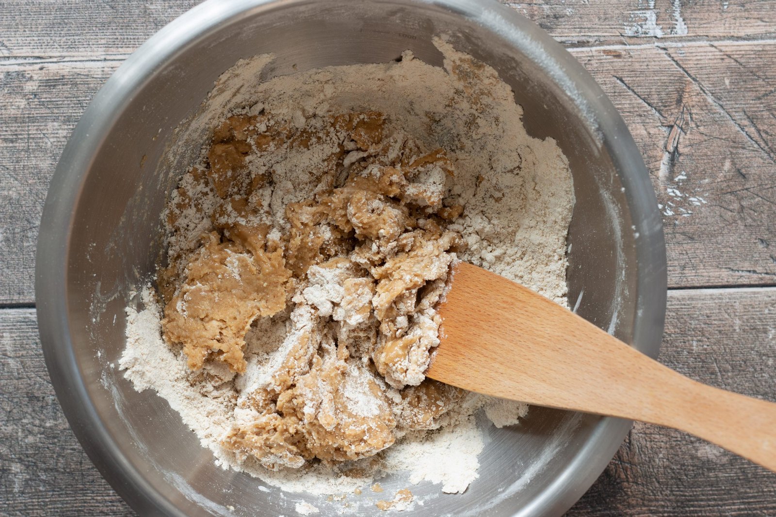 - Dans un saladier, mélangez 160 g de farine d’épeautre et 80 g de farine de châtaigne. Salez selon votre convenance.