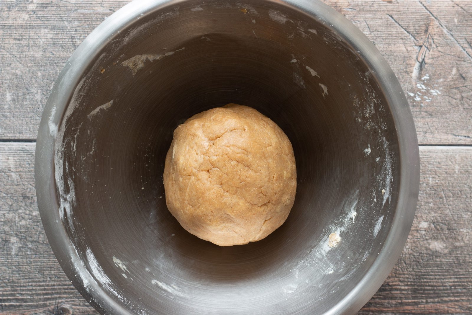 - Ajoutez l’huile et l’eau tiède (plus facile pour travailler la pâte ensuite). Mélangez à la spatule jusqu’à ce que la pâte se forme. Terminez à la main pour former une boule.
