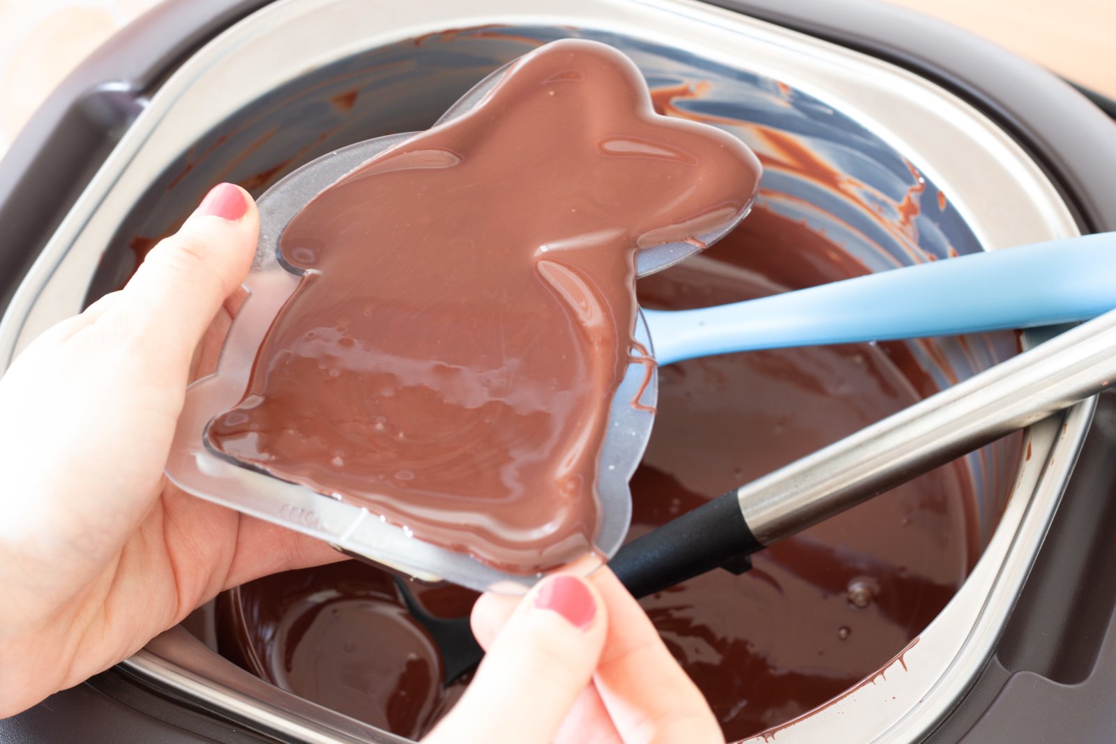 La première fois que j’ai tempéré du chocolat c’était avec des moules en forme de lapin. Je les ai offerts à mes proches qui ont été bluffés et très touchés de cette attention. Certes, les lapins n’étaient pas parfaits mais cela m’a poussé à poursuivre l’aventure. Si bien que j’ai acheté une tempéreuse à chocolat pendant le premier confinement. Parmi toutes les tempéreuses sur le marché, celle qui a le meilleure rapport qualité prix est selon moi la Frifri. Je ne suis pas sponsorisée mais je dois dire que j’en suis satisfaite et que je regrette pas mon achat.